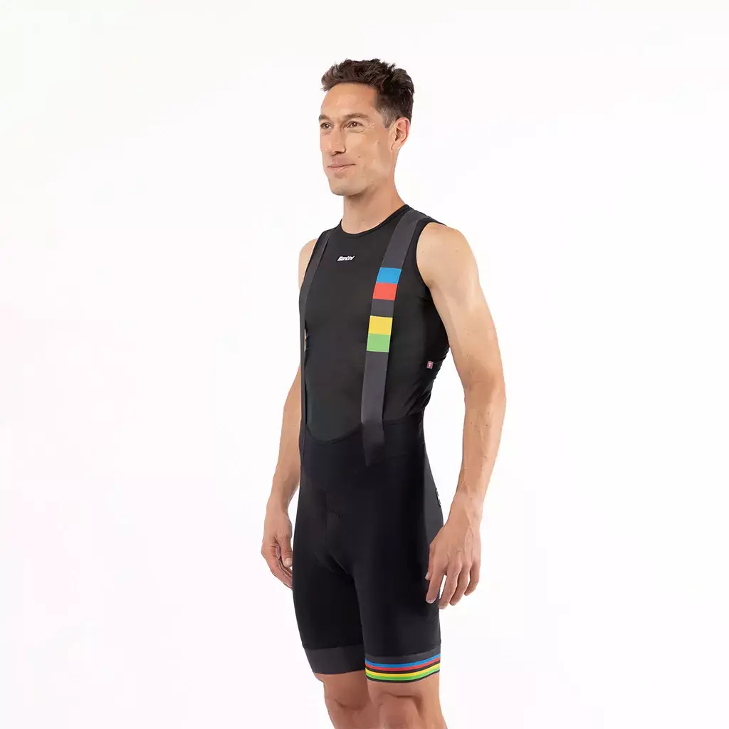 La calza corta con tirantes Campeonatos del Mundo UCI es una prenda de alta calidad, diseñada para ofrecer un confort excepcional y un rendimiento superior.