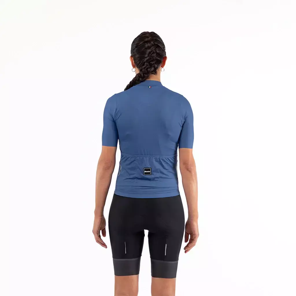 • Calce Slim ajustado al cuerpo. Se mantiene pegado al mismo minimizando la resistencia al viento sentado en el sillín. Este es el calce que define a Santini. Increíblemente versátil, ya que te ofrece un perfil elegante mientras mantiene una comodidad excepcional durante todo el recorrido.